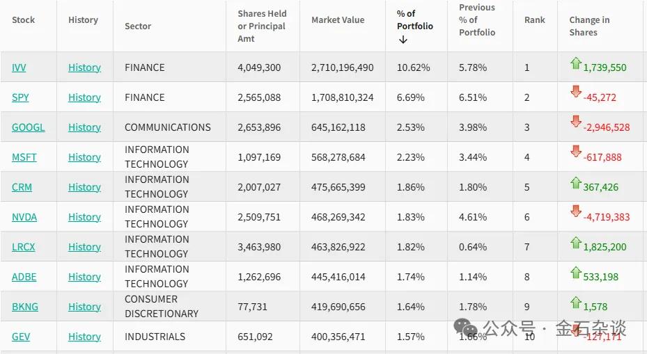 1)桥水疯狂减持英伟达,而且不止英伟达,七姐妹不少都在减持。其中,英伟达减持472万股,只剩下251万股,套现了大约9亿美元,仓位猛砍65%。此外万利配资,桥水还减持标普500ETF,谷歌减仓超50%,微软减持1/3。