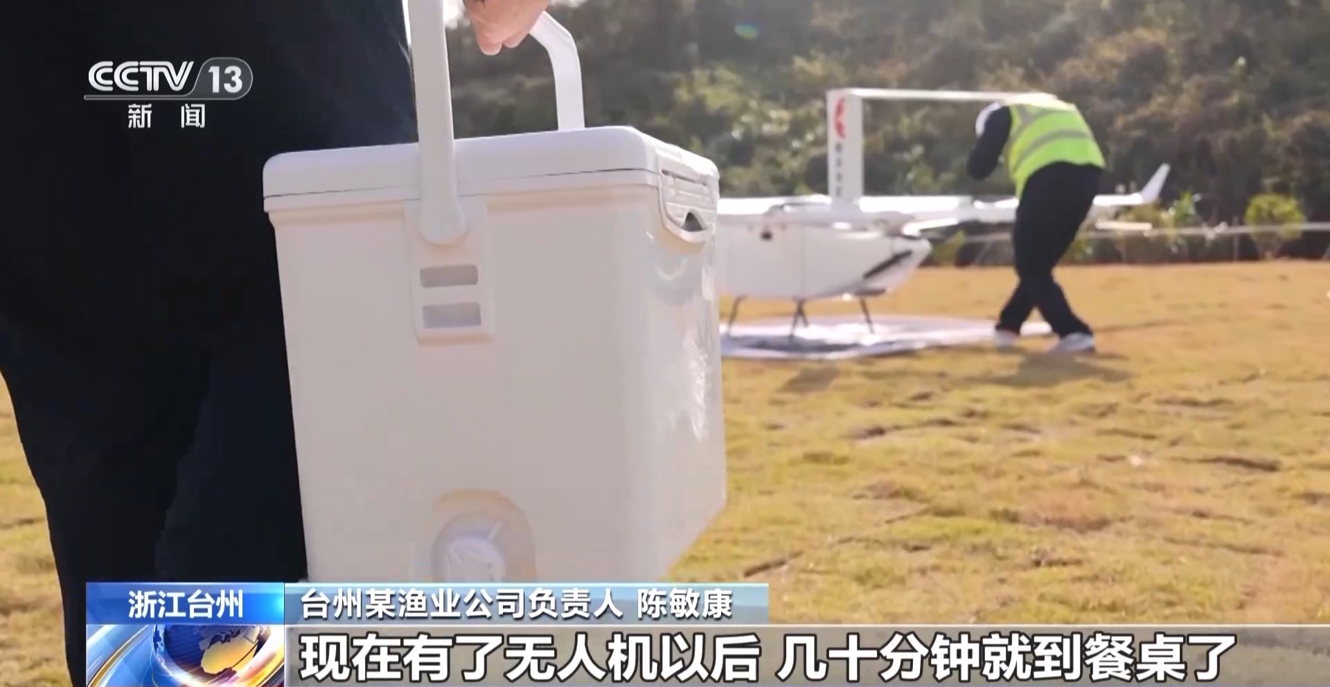 台州某渔业公司负责人 陈敏康:以前我们鱼捕上去运到了市区都要好几个小时,现在有了无人机以后,几十分钟就到餐桌了。现在无人机的运输量比较小,但我们来看这个前景是比较好的,这也为我们岛上的渔民开拓了致富的新路子。